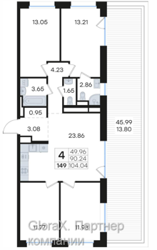 Площадь от 71 м2
