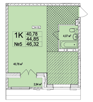 Площадь от 46.3 м2