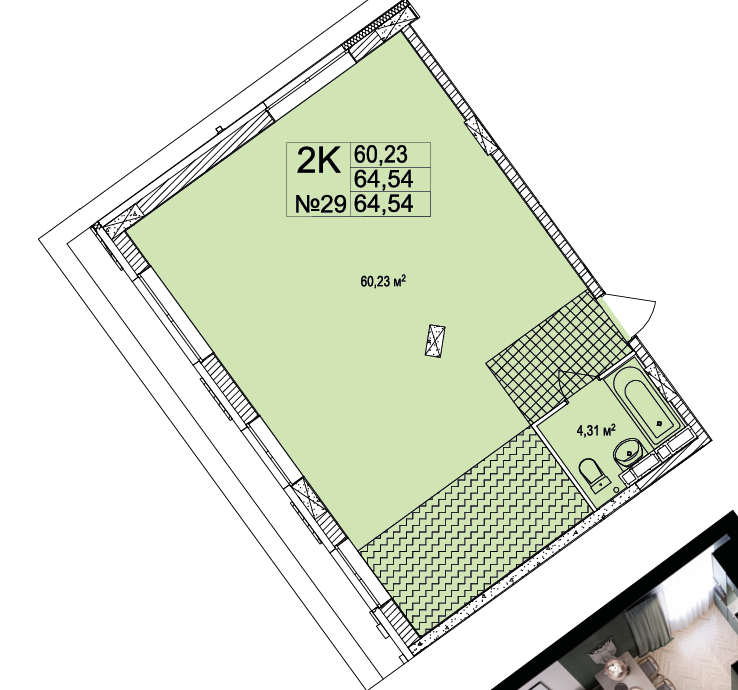 Площадь от 59.7 м2