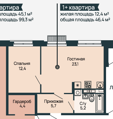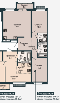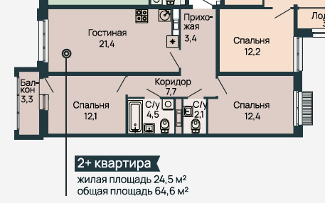 Площадь от 55.1 м2