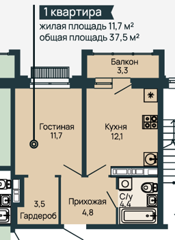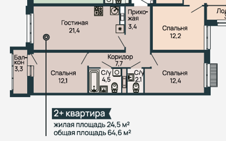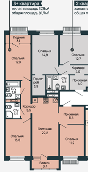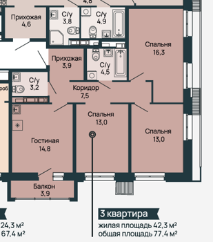 Площадь от 72.7 м2