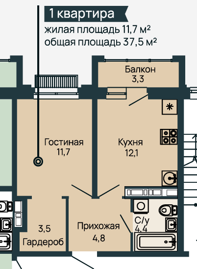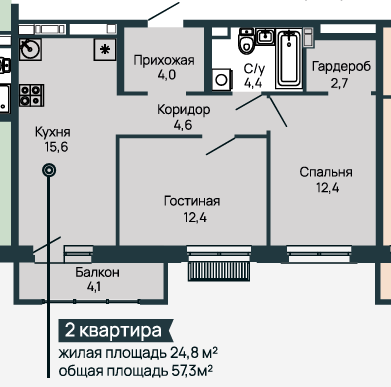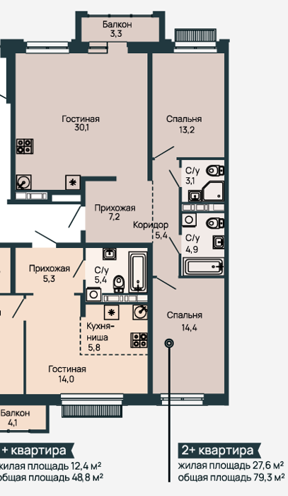 Площадь от 52.8 м2